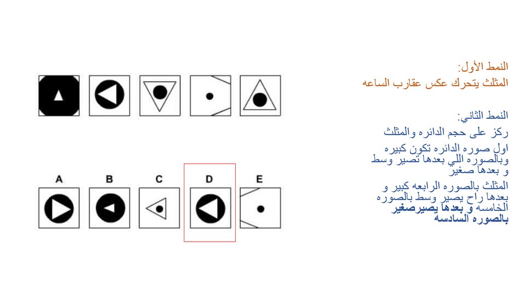 النمط األول :الشكل الدائره و المربع يتحركونمع عقارب الساعه