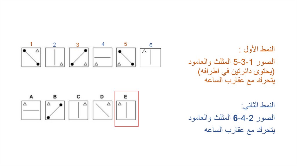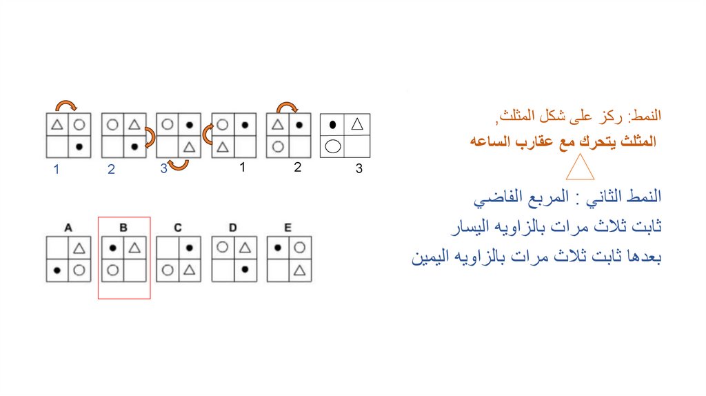 النمط :ركز على شكل المثلث,المثلث يتحرك مع عقارب الساعه