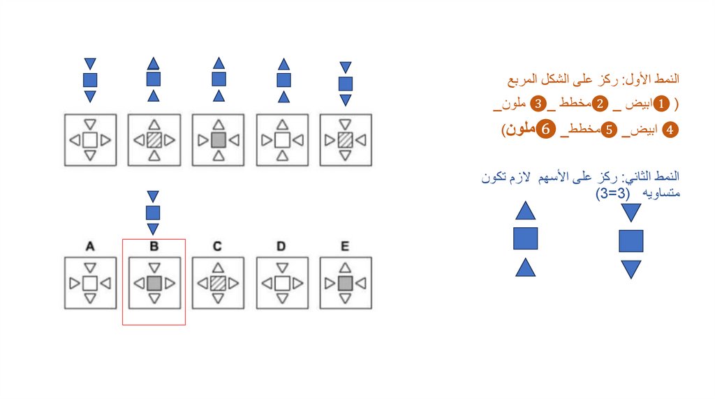 النمط األول :ركز على الشكل المربع( ❶ابيض _ ❷مخطط _❸ ملون_