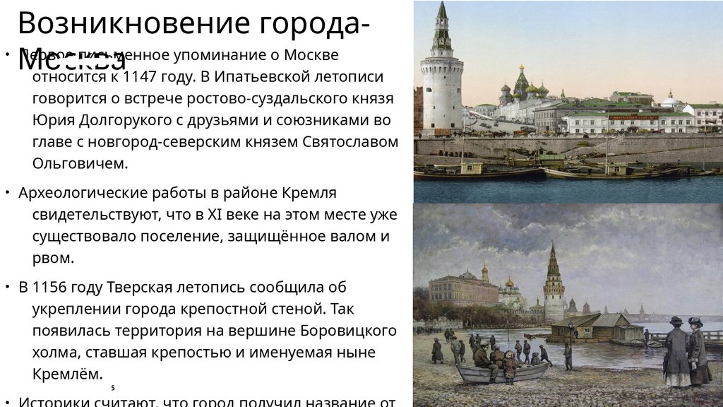 Возникновение города• Первое письменное упоминание о МосквеМосква