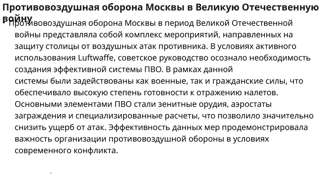 • Противовоздушная оборона Москвы в период Великой Отечественной