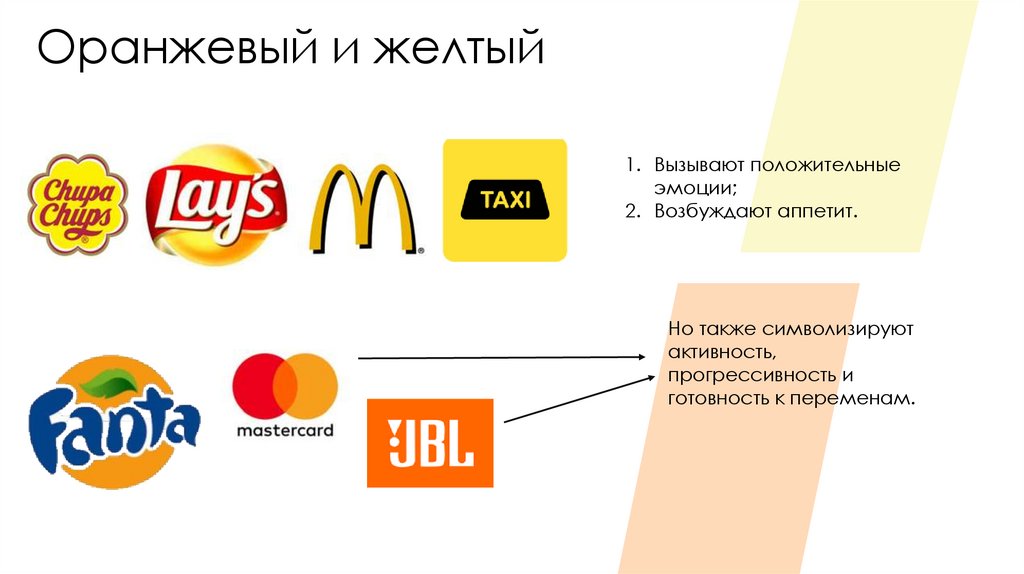 Оранжевый и желтый1. Вызывают положительные