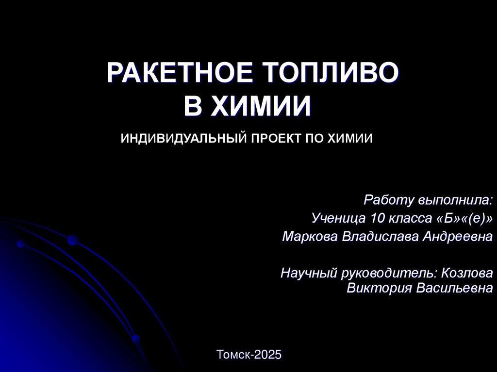Химия – основа космическихполетов. Ракетное топливо – это сложная