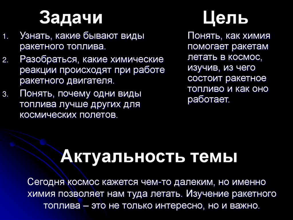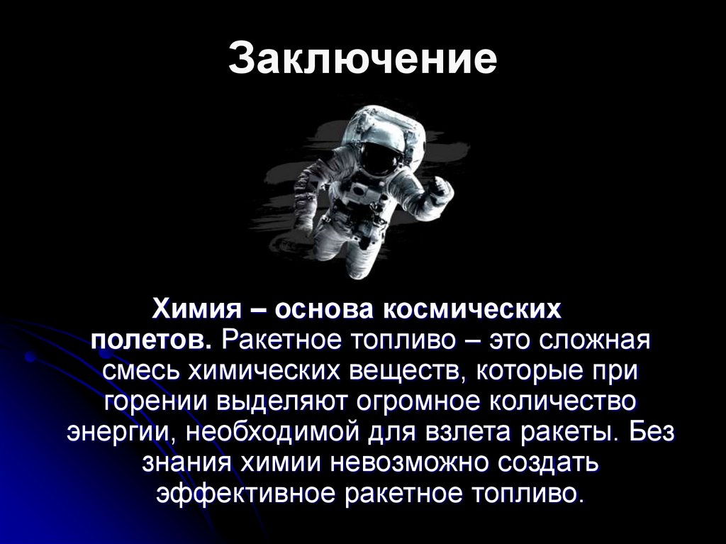 химия позволяет нам туда летать. Изучение ракетного