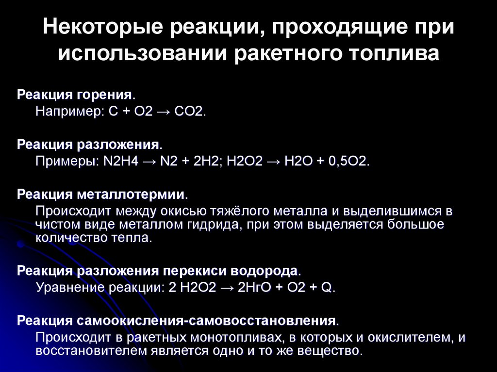 6. Некоторые реакции, проходящие при использовании ракетного топлива