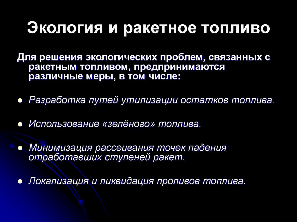 Для решения экологических проблем, связанных сракетным топливом, предпринимаются