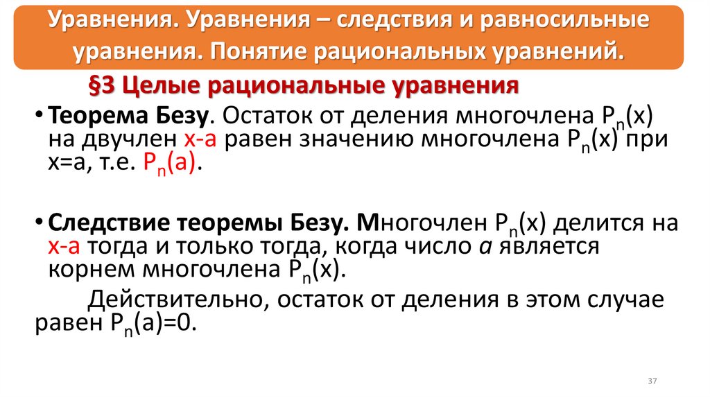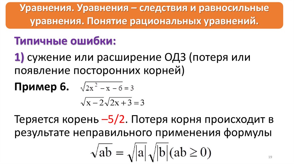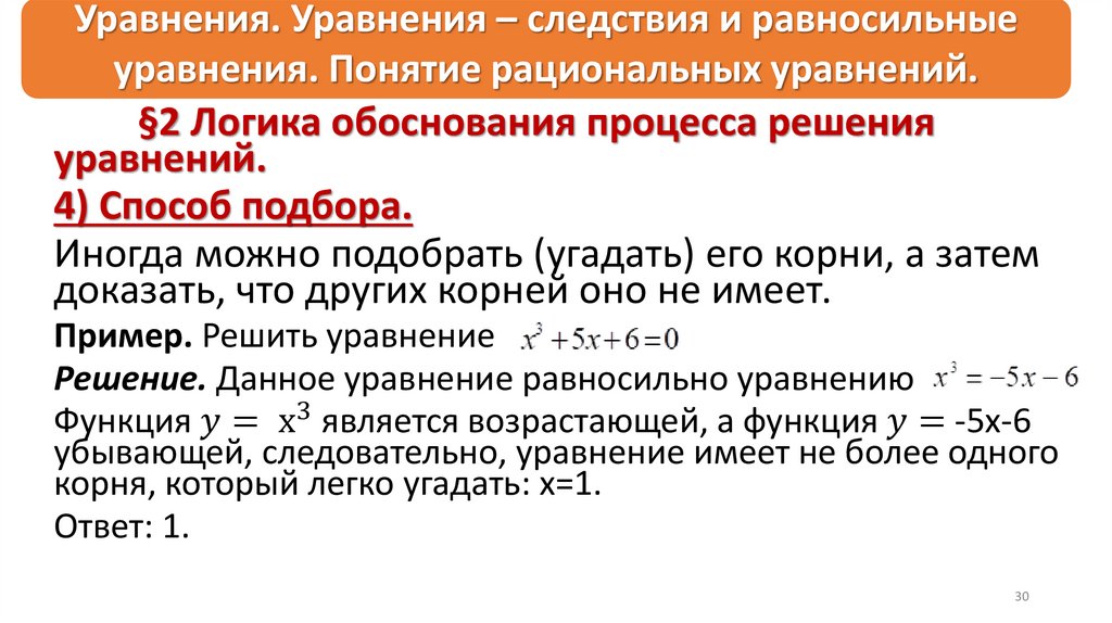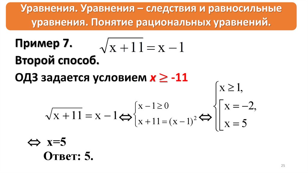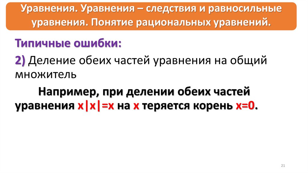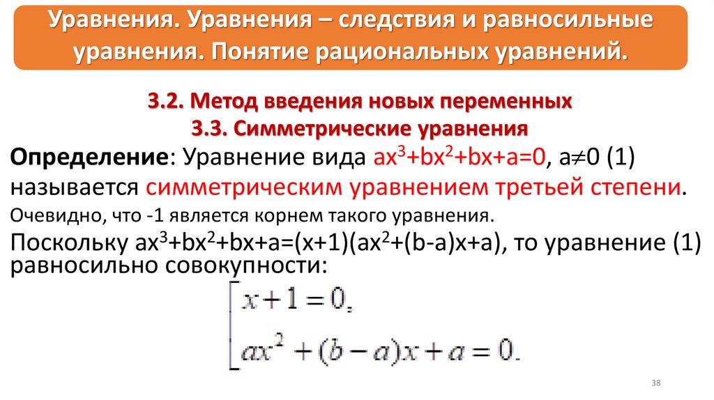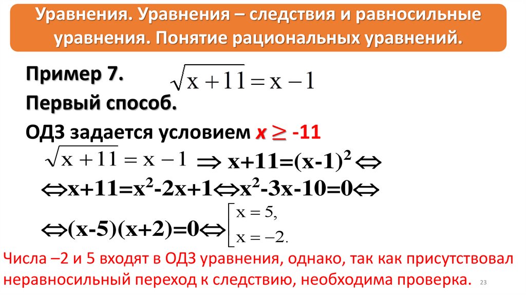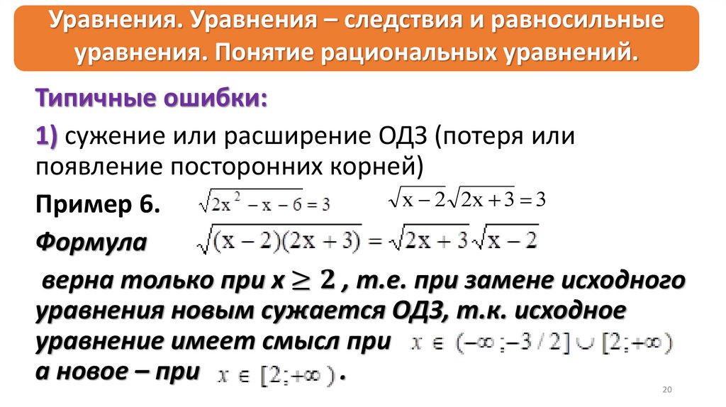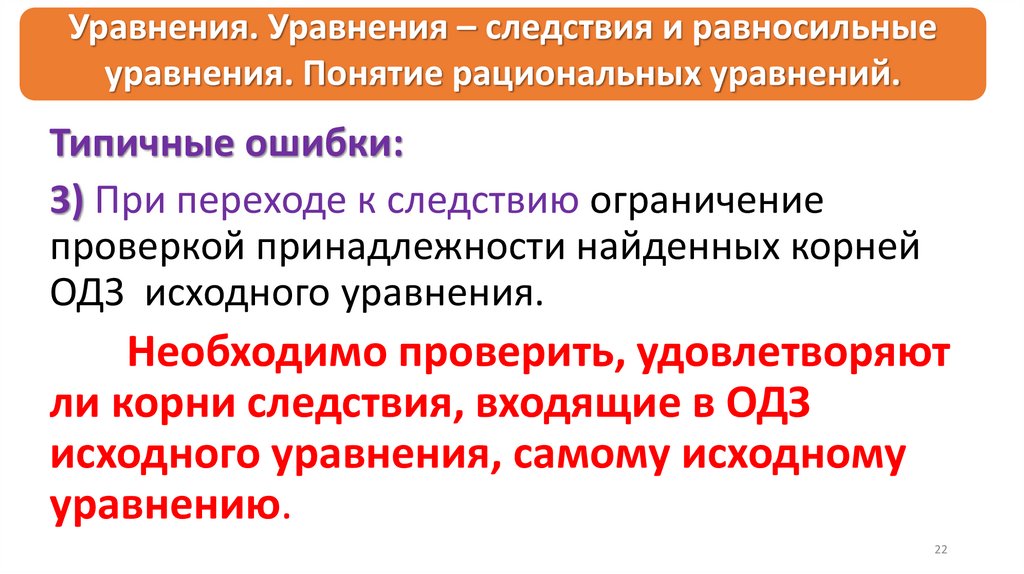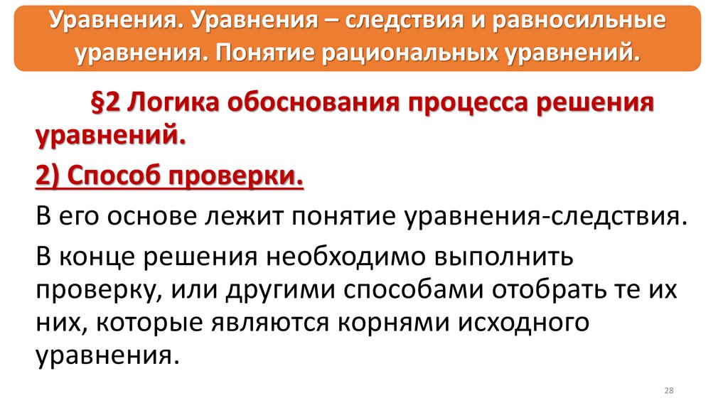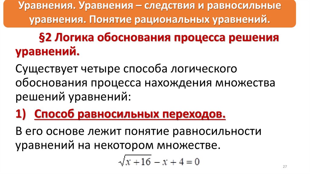 Уравнения. Уравнения – следствия и равносильныеуравнения. Понятие рациональных уравнений.