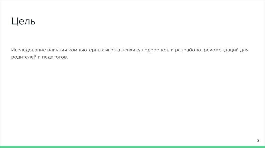 ЦельИсследование влияния компьютерных игр на психику подростков и разработка рекомендаций для