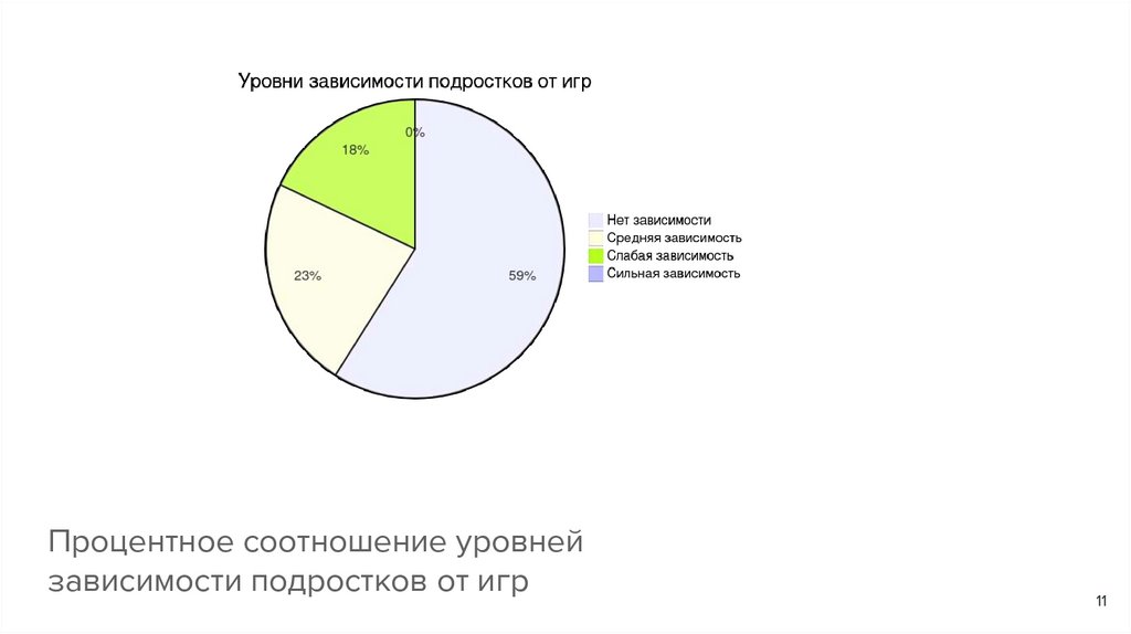 Процентное соотношение уровнейзависимости подростков от игр