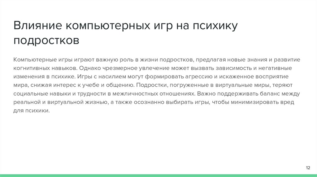 Влияние компьютерных игр на психикуподростков