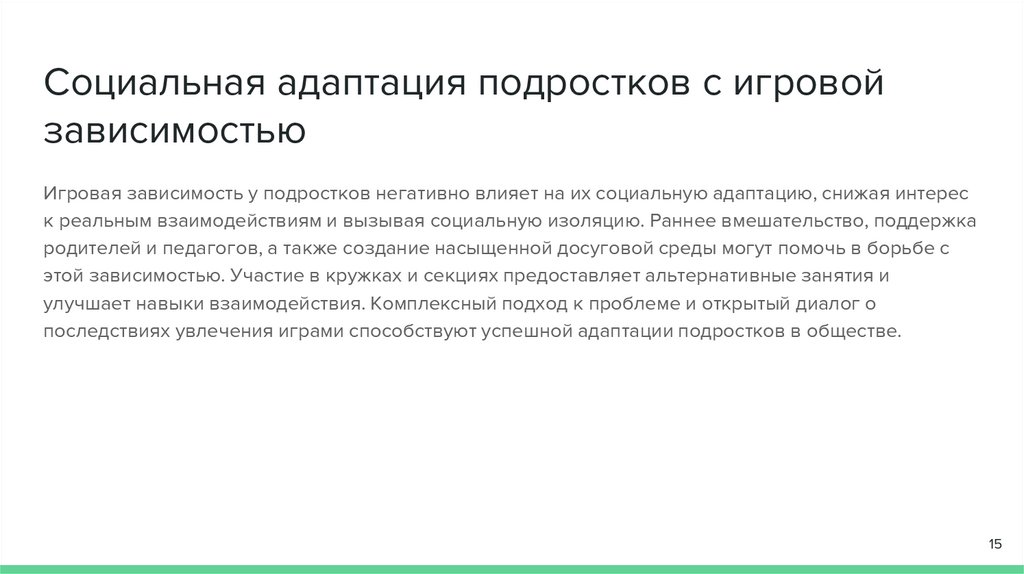 Социальная адаптация подростков с игровойзависимостью