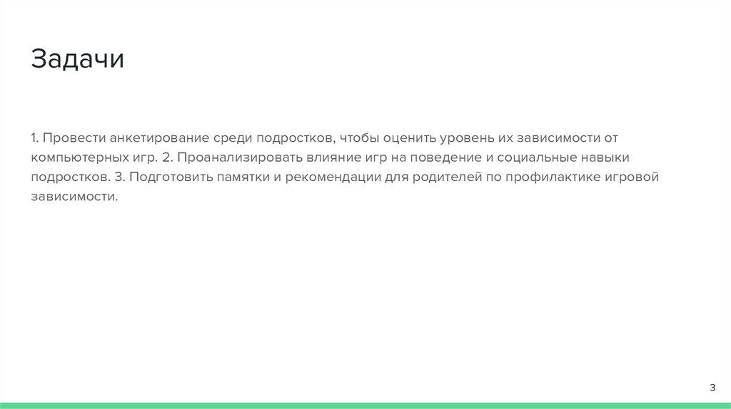 Задачи1. Провести анкетирование среди подростков, чтобы оценить уровень их зависимости от