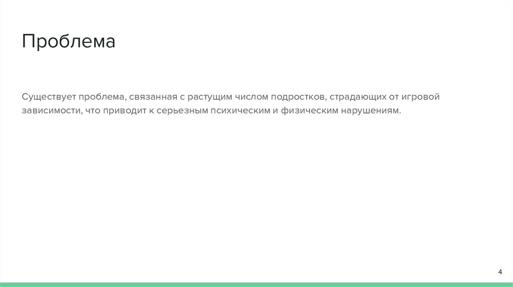 ПроблемаСуществует проблема, связанная с растущим числом подростков, страдающих от игровой
