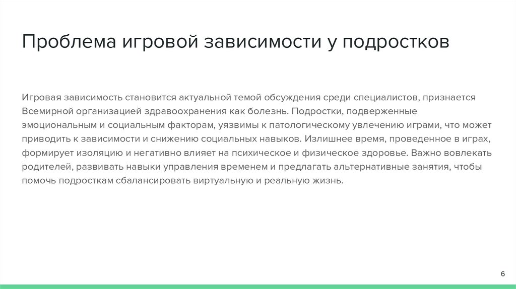 Проблема игровой зависимости у подростковИгровая зависимость становится актуальной темой обсуждения среди специалистов, признается