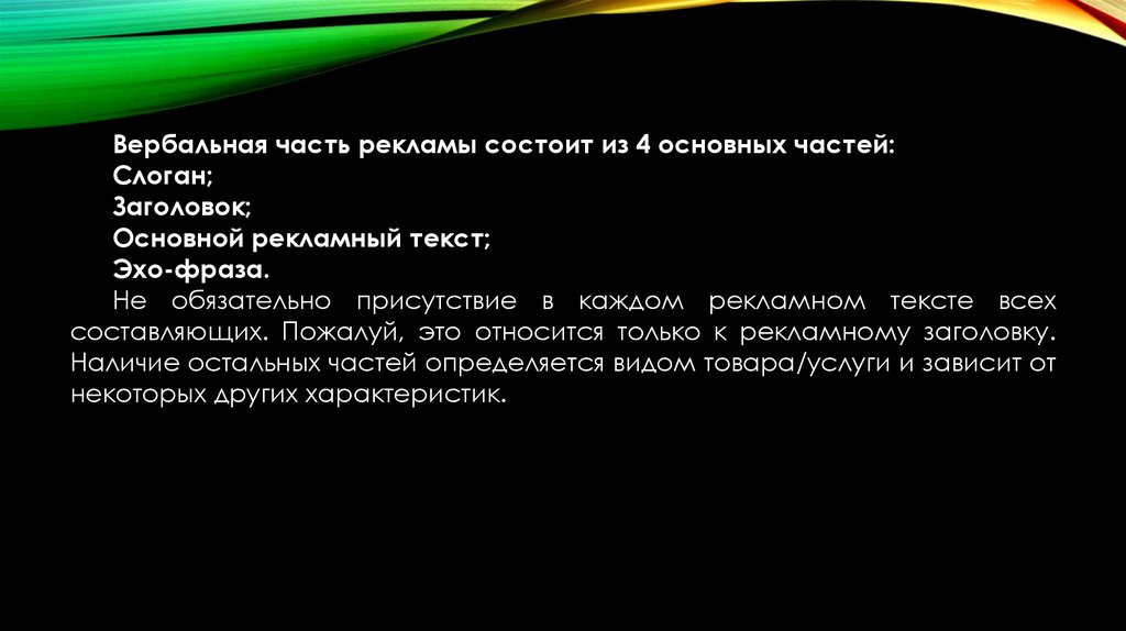 ВЕРБАЛЬНАЯ ЧАСТЬРЕКЛАМЫ