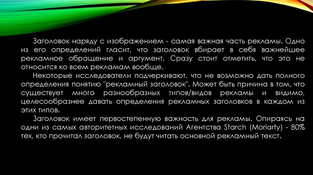 рекламный заголовок являются различными элементами рекламы. Пожалуй, наиглавнейшей