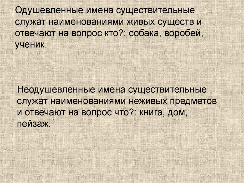 Одушевленные имена существительныеслужат наименованиями живых существ и