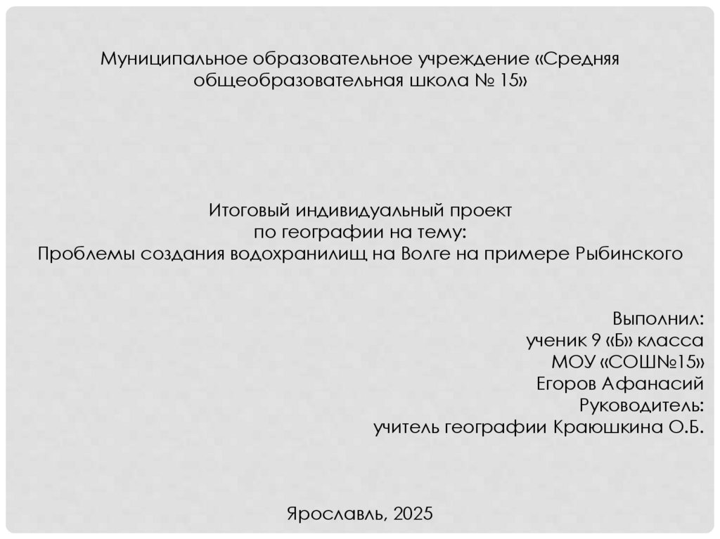 Проблемы создания водохранилищ на Волге на примере Рыбинского