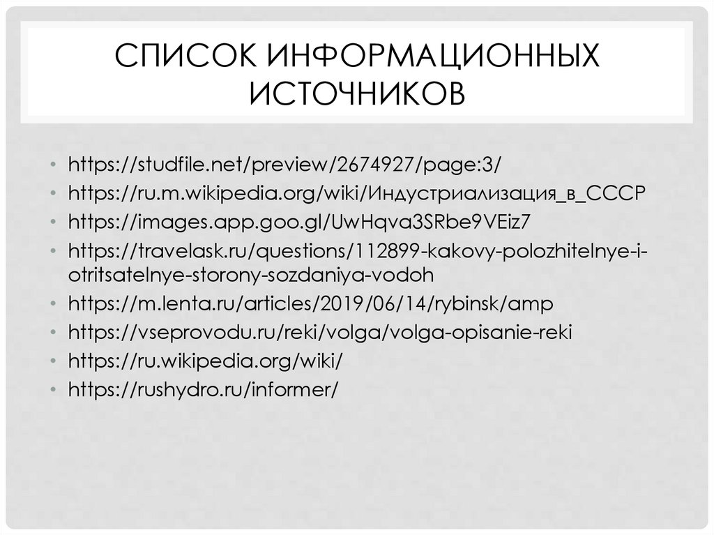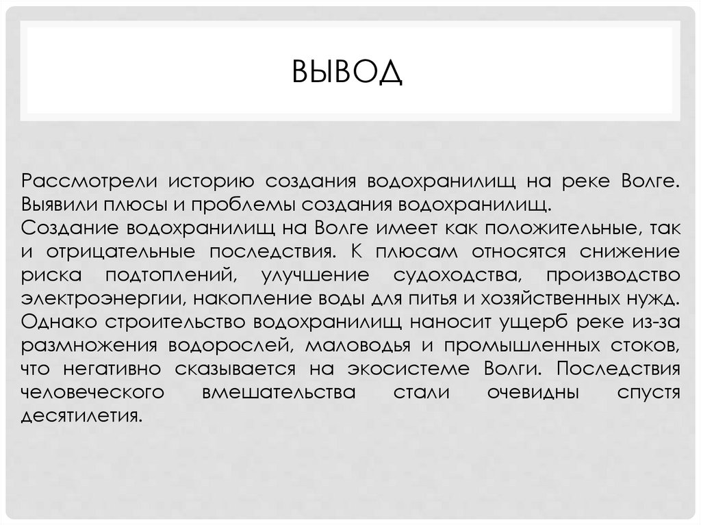 ВЫВОДРассмотрели историю создания водохранилищ на реке Волге.