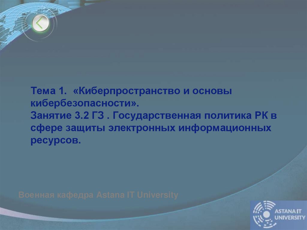 1. Тема 1. «Киберпространство и основы кибербезопасности». Занятие 3.2 ГЗ . Государственная политика РК в сфере защиты электронных
