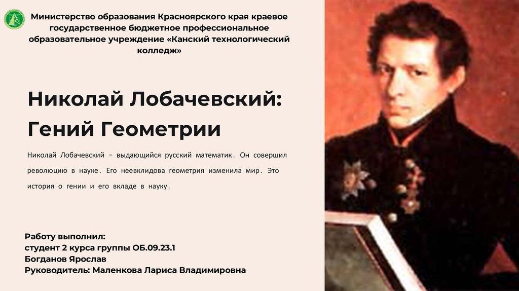 Николай Лобачевский – выдающийся русский математик. Он совершил
