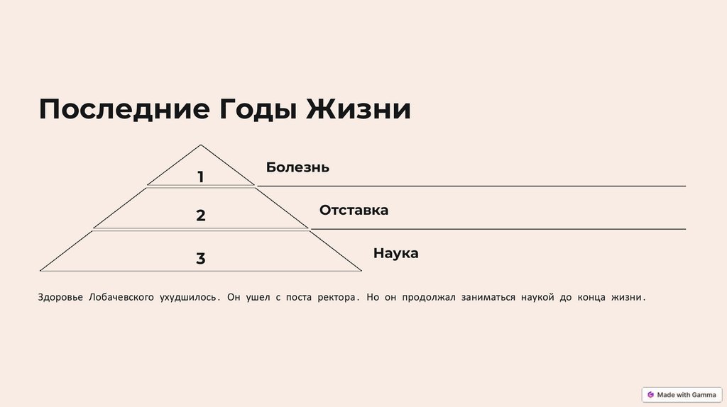 Здоровье Лобачевского ухудшилось. Он ушел с поста ректора. Но он продолжал заниматься наукой до конца жизни.