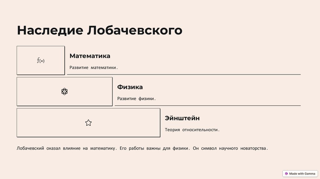 Лобачевский оказал влияние на математику. Его работы важны для физики. Он символ научного новаторства.