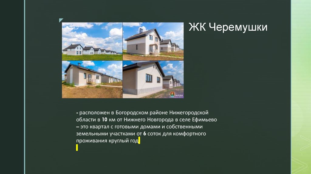 – это квартал с готовыми домами и собственными
