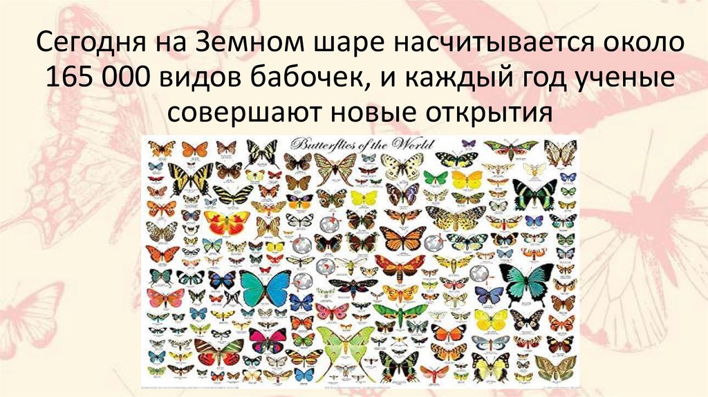 2. Сегодня на Земном шаре насчитывается около 165 000 видов бабочек, и каждый год ученые совершают новые открытия