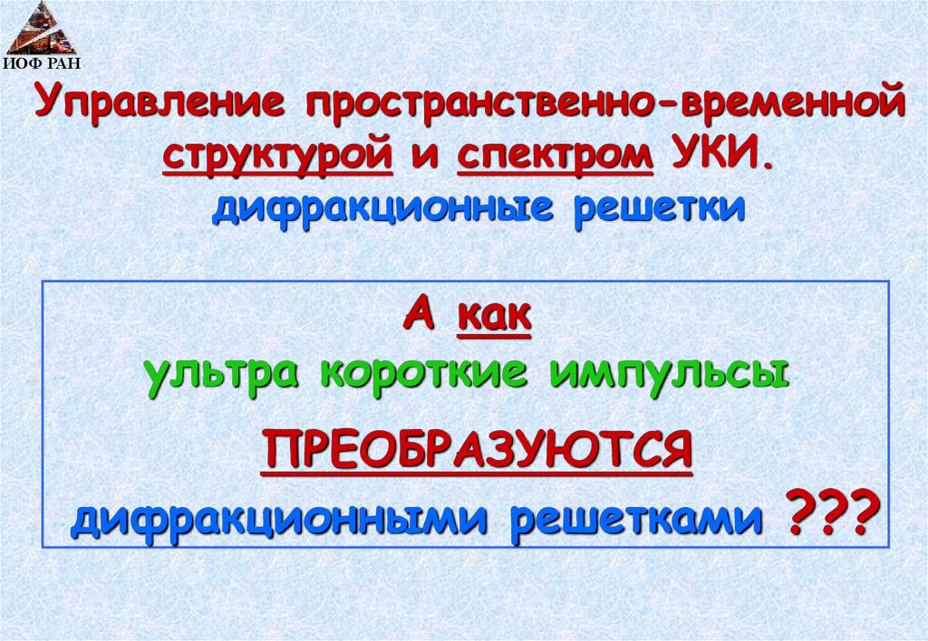 Управление пространственно-временным спектромИОФ РАН