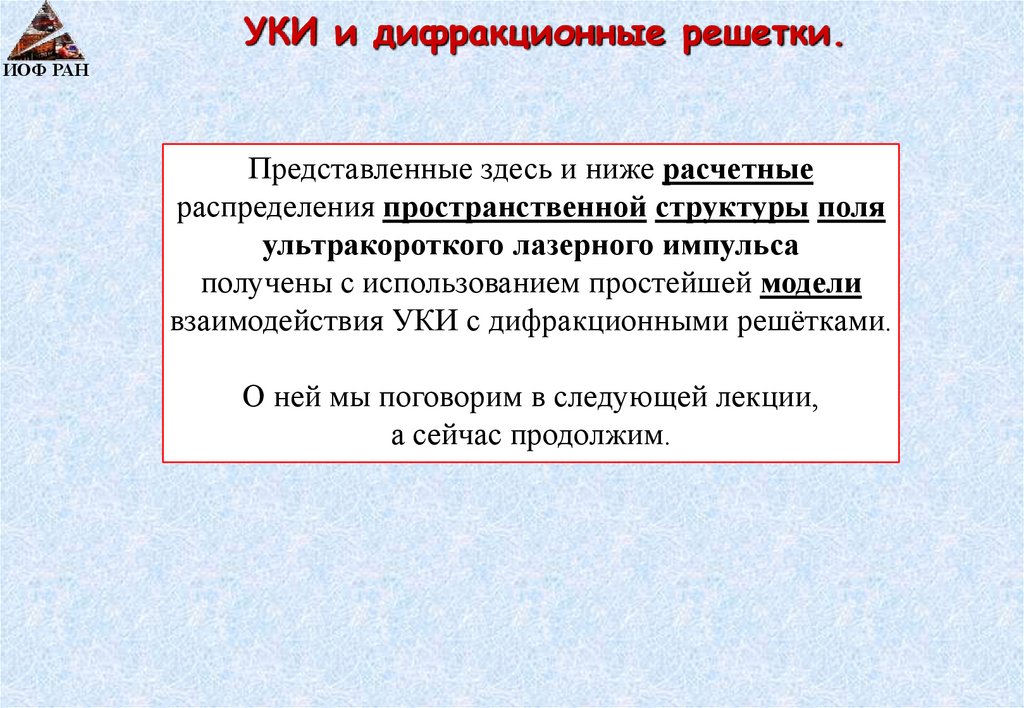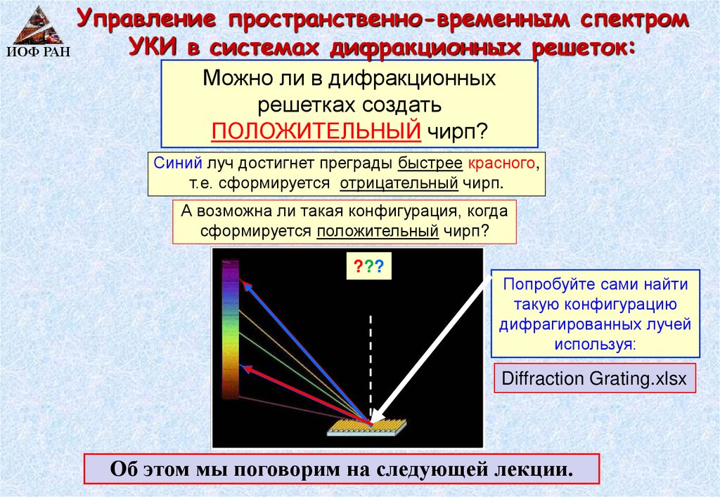 1. Управление пространственно-временным спектром УКИ – дифракционные