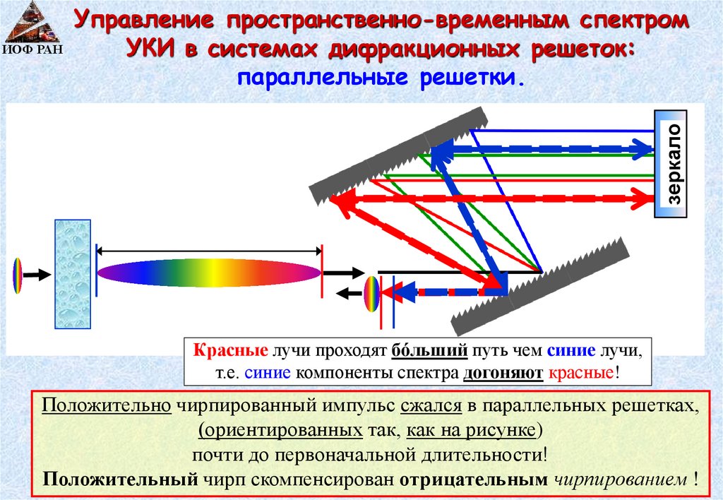 красную - и убирает пространственный чирп. Импульс распространяется в пространстве