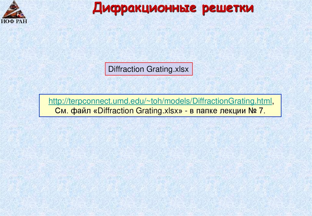 См. файл «Diffraction Grating.xlsx» - в папке лекции № 7.