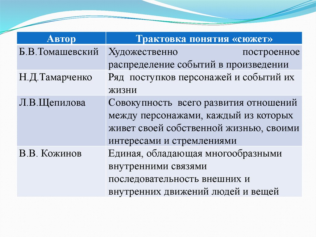 АвторТрактовка понятия «сюжет»