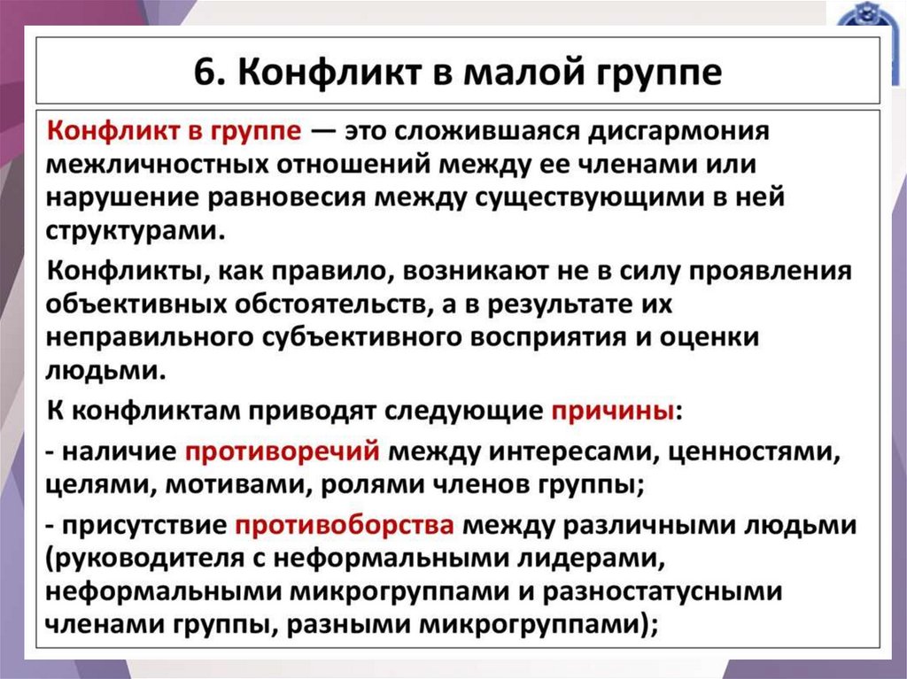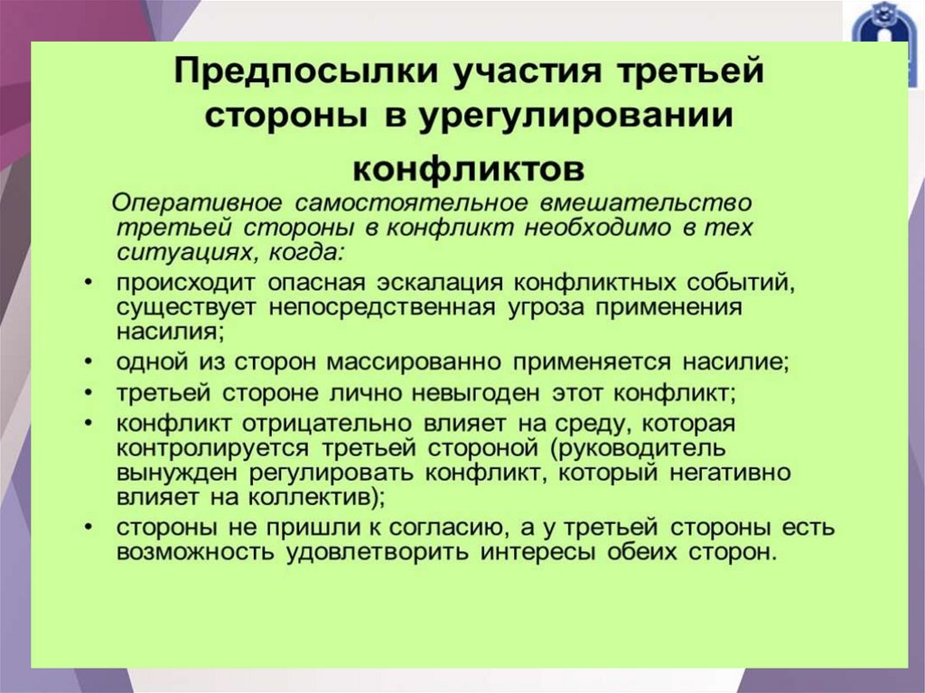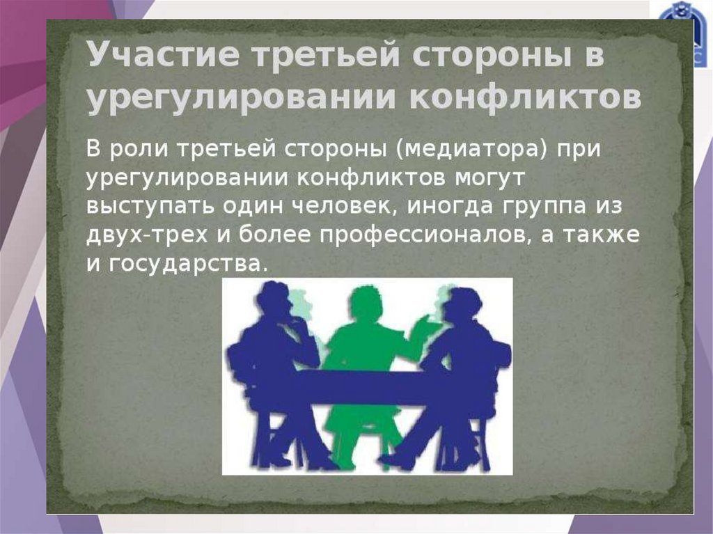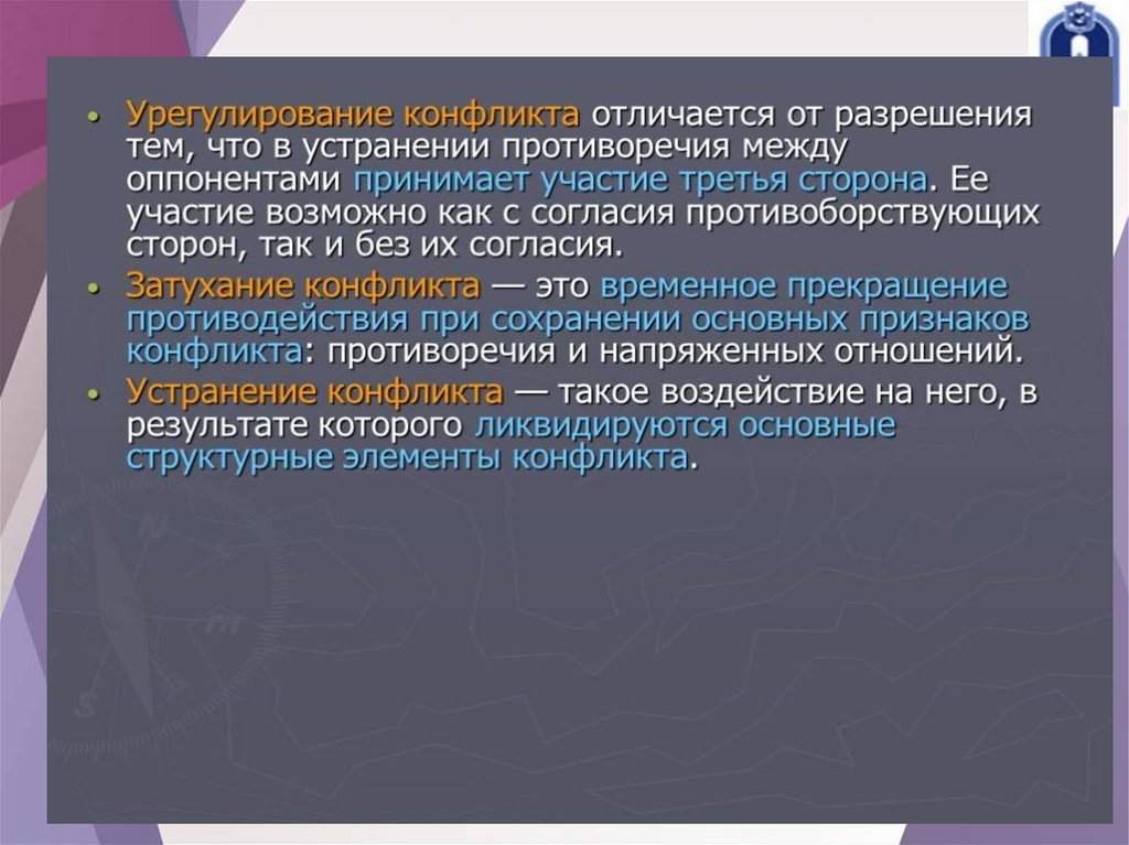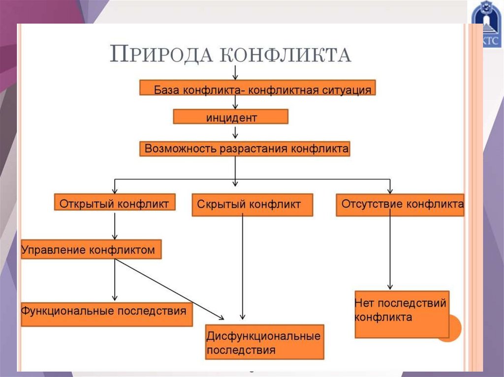 7. Конфликт (от лат. conflictus — столкновение) — это отсутствие согласия между двумя или более сторонами, которые могут быть