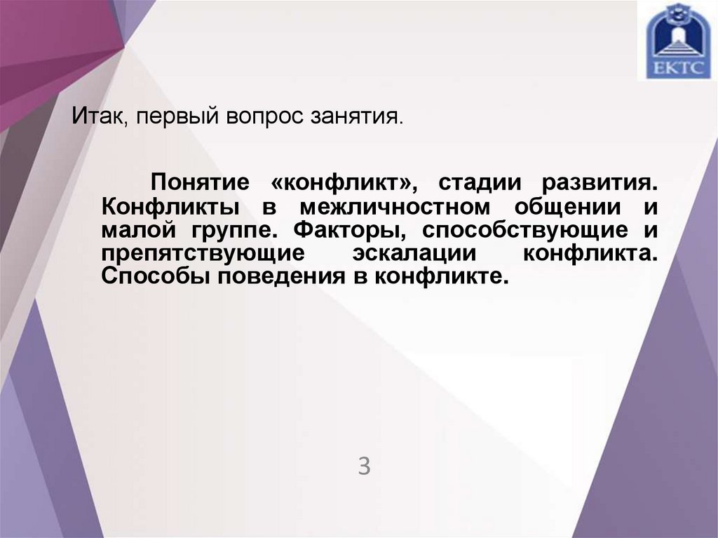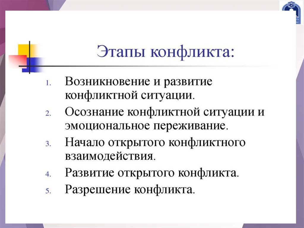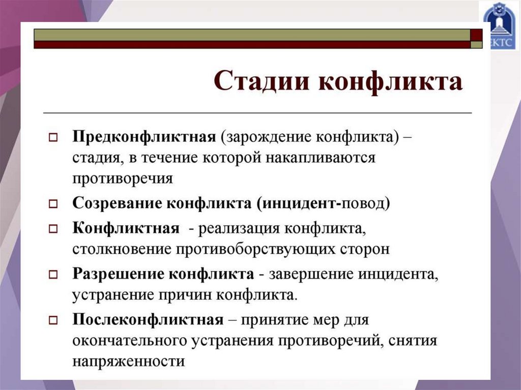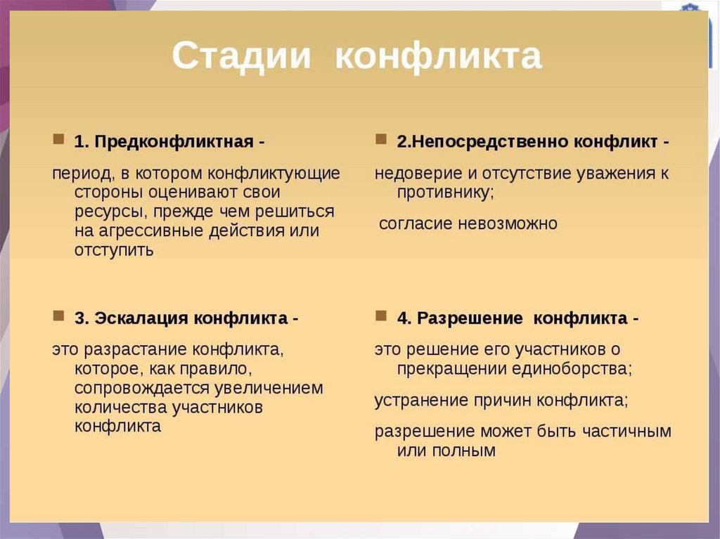 Итак, первый вопрос занятия.Понятие «конфликт», стадии развития.