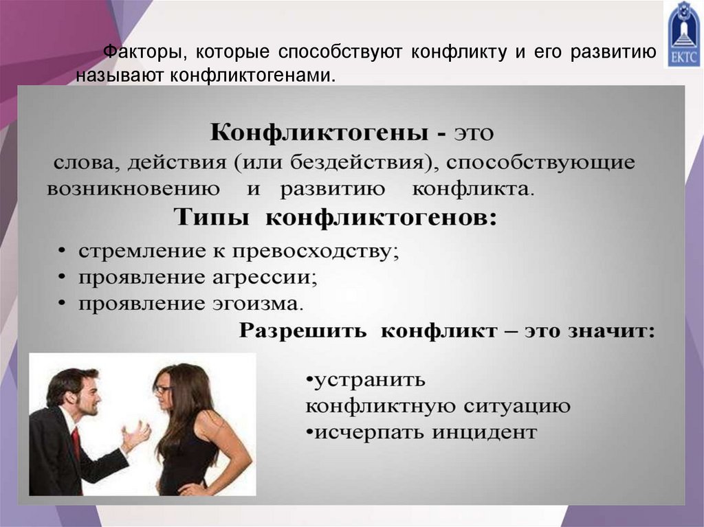 Факторы, которые способствуют конфликту и его развитиюназывают конфликтогенами.