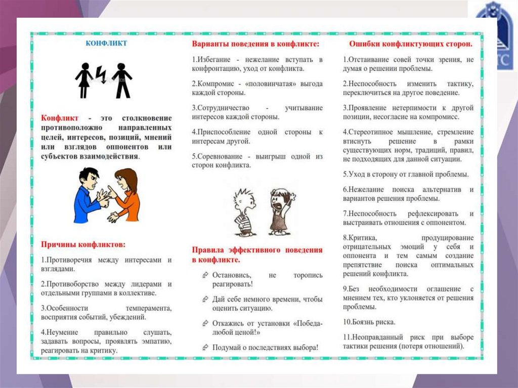 Конфликты и способы их разрешения. Практическое занятие № 10