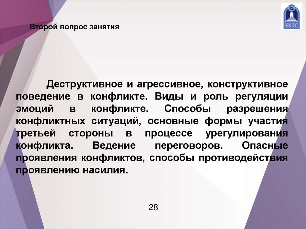 Второй вопрос занятияДеструктивное и агрессивное, конструктивное