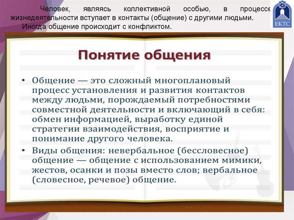 жизнедеятельности вступает в контакты (общение) с другими людьми.