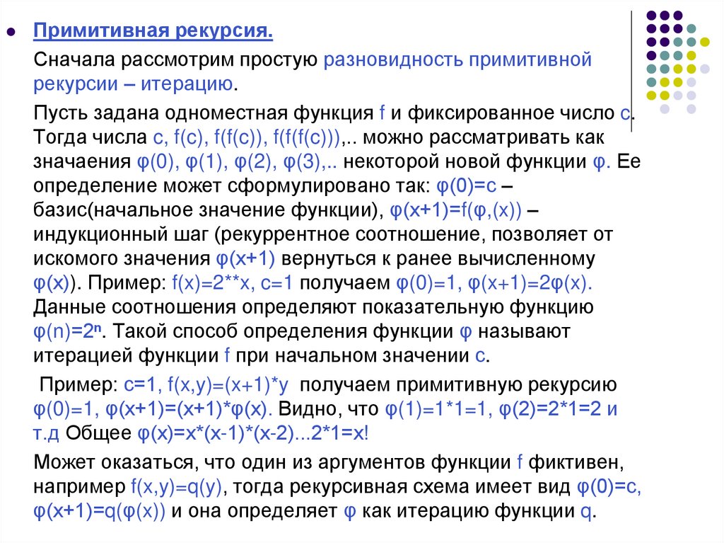 Примитивная рекурсия.Сначала рассмотрим простую разновидность примитивной