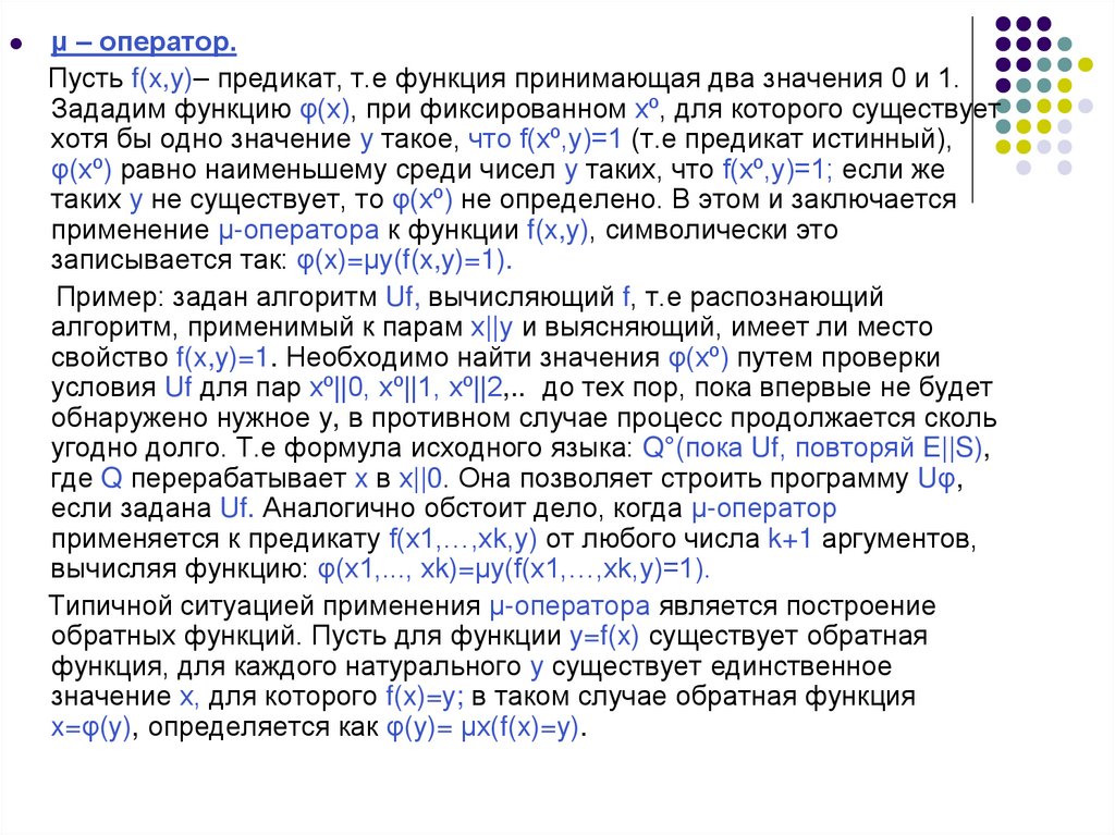 если задана Uf. Аналогично обстоит дело, когда μ-оператор