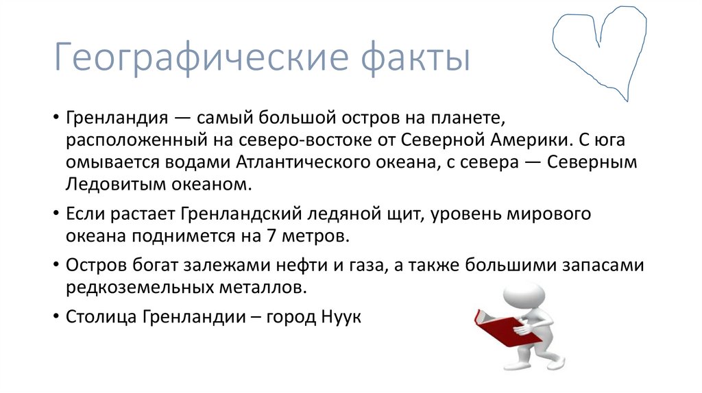 • Гренландия — самый большой остров на планете,расположенный на северо-востоке от Северной Америки. С юга
