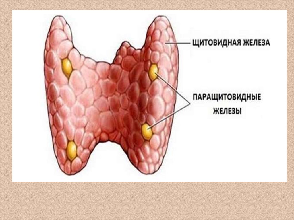 ?????????? Есть ??????????25. Паращитовидные железы — это небольшие железы (как правило, их 4), расположенные позади щитовидной железы.