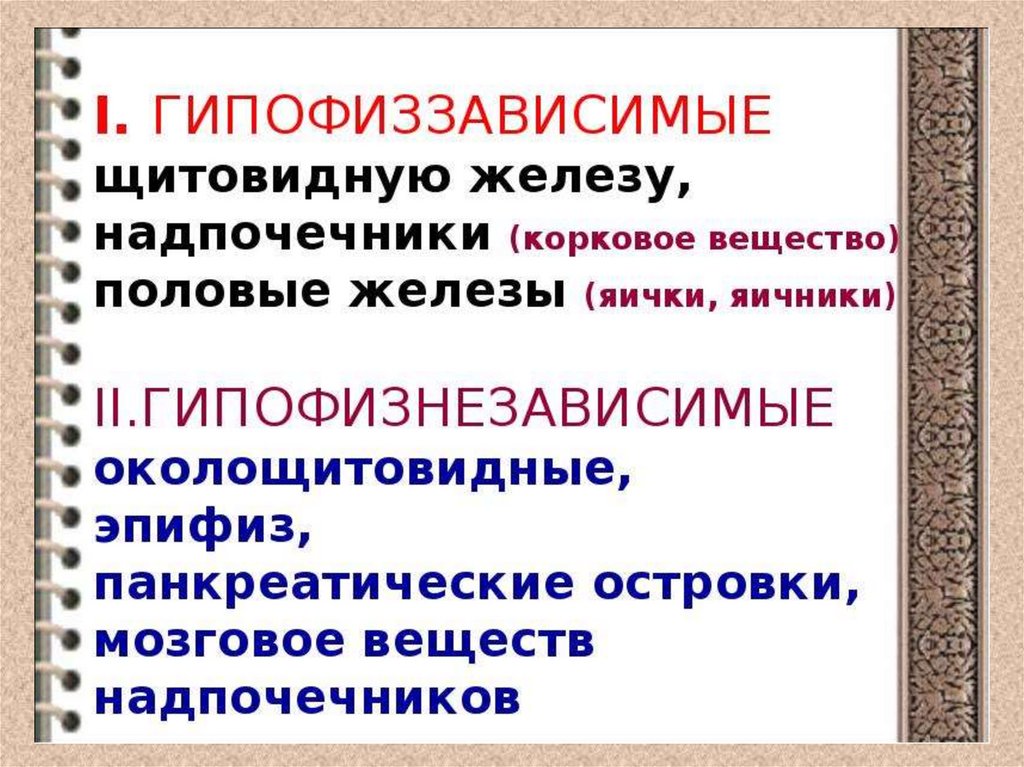 1. ГипофизНЕЗАВИСИМЫЕ железы и их гормоны