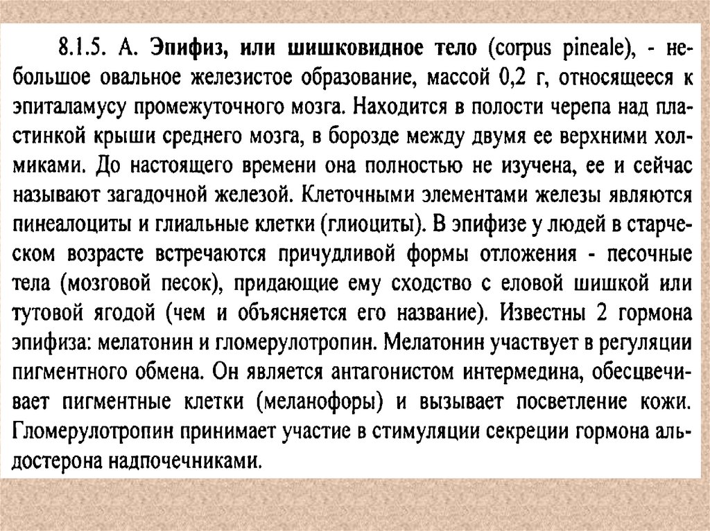 8. Эпифиз – небольшая непарная эндокринная железа, которая находится в промежуточном мозге.