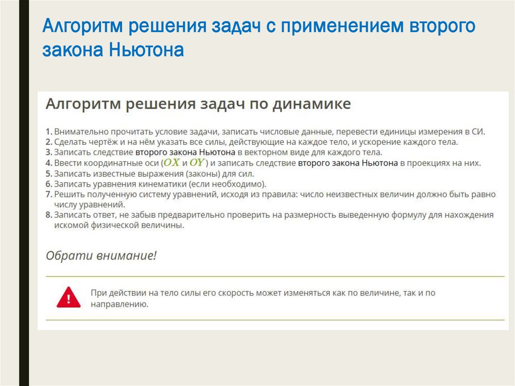 Алгоритм решения задач с применением второгозакона Ньютона