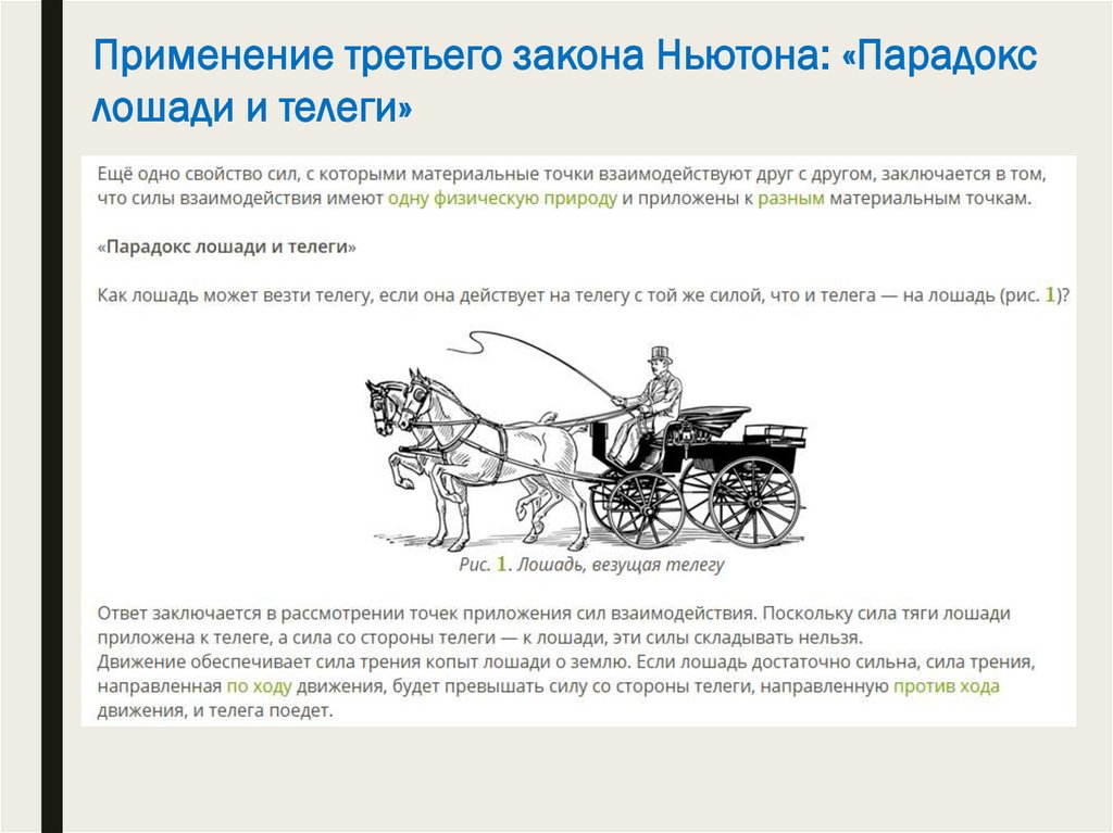 Применение третьего закона Ньютона: «Парадокслошади и телеги»
