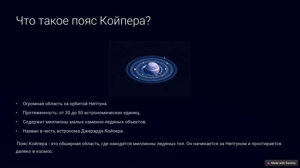 # Пояс Койпера: Загадочный мир за орбитой НептунаПояс Койпера – это огромная область за орбитой Нептуна,