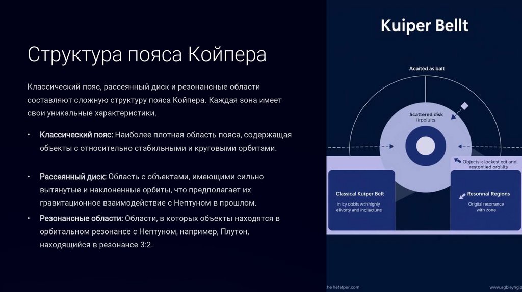 составляют сложную структуру пояса Койпера. Каждая зона имеет